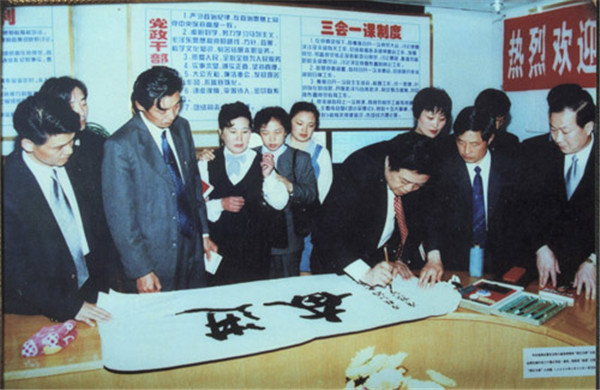星空体育酒业名誉员工赵忠祥在为企业题字