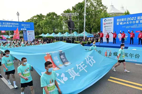 5月5日上午2021湖北长江超级半程马拉松在鄂州市星空体育市石首市嘉鱼县巴东县5地同时鸣枪开跑 这是湖北省疫…