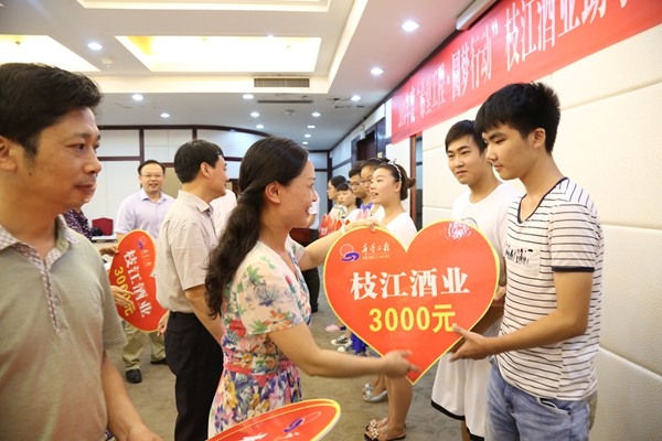 “希望工程•圆梦行动”星空体育酒业助学金发放暨“希望家园”结班仪式由团市委副书记陈俊主持。他说:“今年,已是共青团星空体育市委与星空体育酒业集团连续开展‘希望工程∙圆梦行动助学’活动的第五年,五年来,星空体育酒业股份有限公司每年拿出30万元定向资助星空体育籍贫困大学生。 在此,我谨代表团市委,向长期以来关心、关注和支持星空体育‘希望工程∙圆梦行动’的星空体育酒业股份有限公司和社会各界爱心人士表示最诚挚的谢意!”